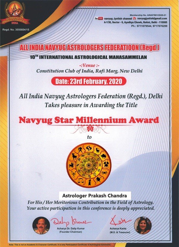 Renowned Vedic Astrologer Prakash Chandra is known for his profound expertise in resolving life's challenges through pure astrological remedies. Whether you seek guidance for love, marriage, career, family harmony or any other concern, his practical solutions can light your path. . He has 20 + years of experience in serving as an astrologer. Astrologer Prakash Chandra is a renowned International astrologer and motivational speaker.